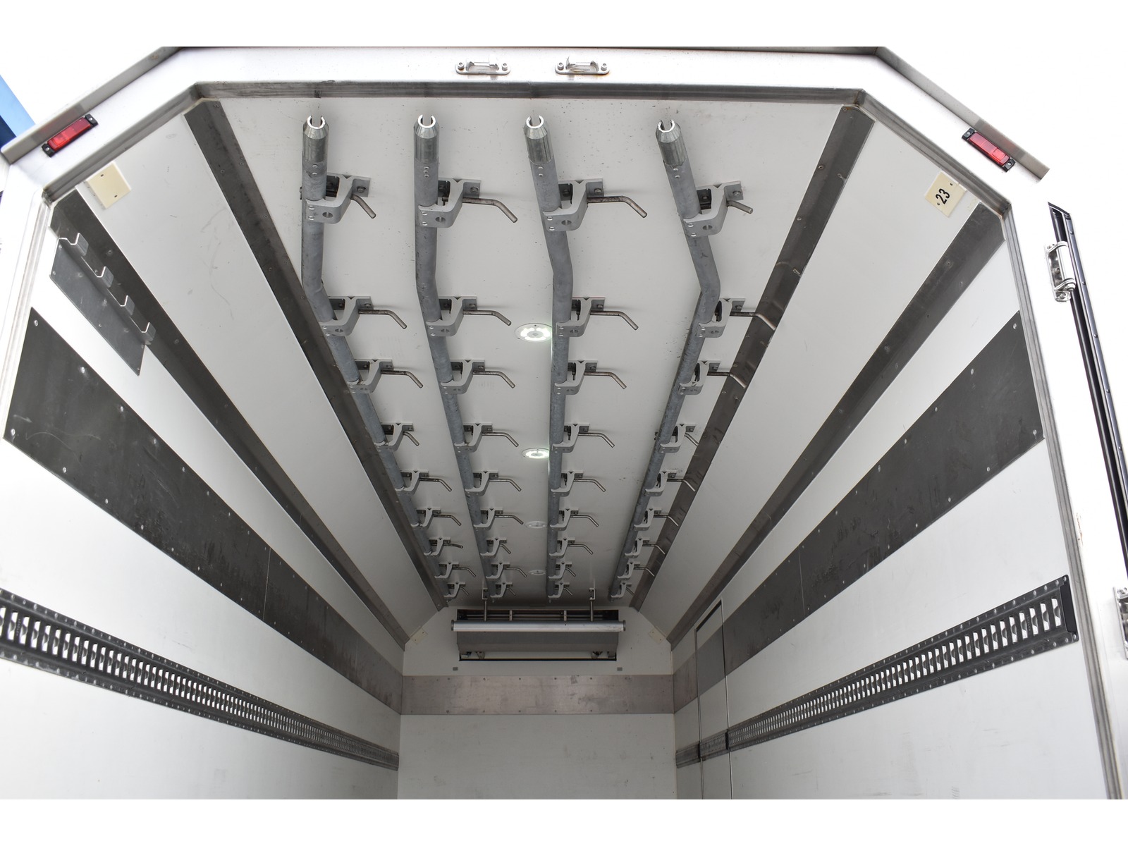 | Zubehör | Kühlgerät, Differentialsperre, Traktionskontrolle, ABS, Klima, Multifunktionsanzeige, Tempomat, Zentralverriegelung, El. Aussenspiegel, El. Fensterheber, 9-Gang Schaltgetriebe S-Kabine Radstand 4'100 mm 4 Fleischbahnen Aluboden Fenster in Kabinenrückwand Heckflügeltüren Klimaanlage Kühlaggregat Supra 550 Silent mit Diesel- oder Netzbetrieb Motorbremse Scheibenbremsen Seitentüre rechts Sitzheizung und Sitzklimatisierung Spurassistent Tempomat Vollluftfederung |