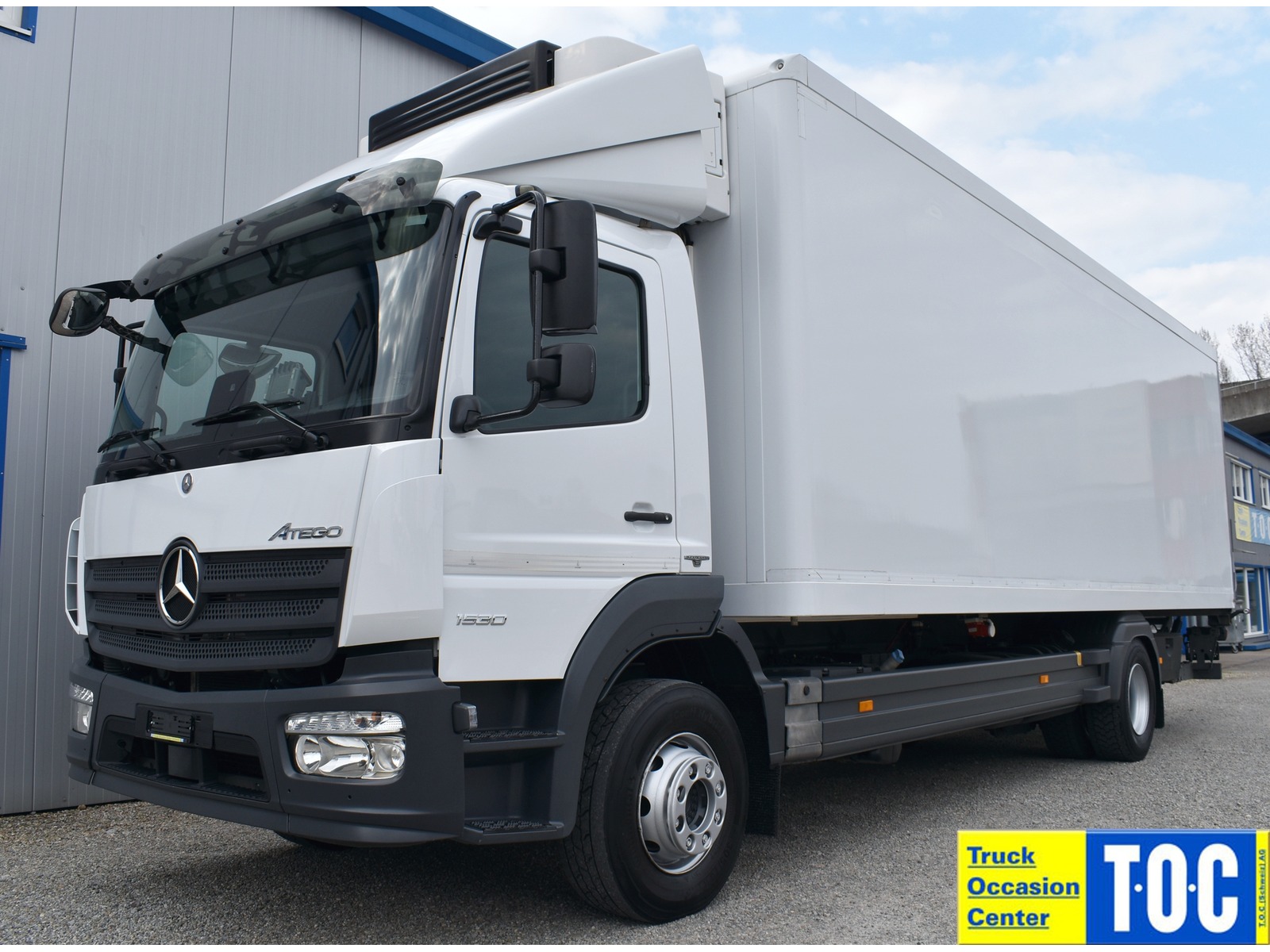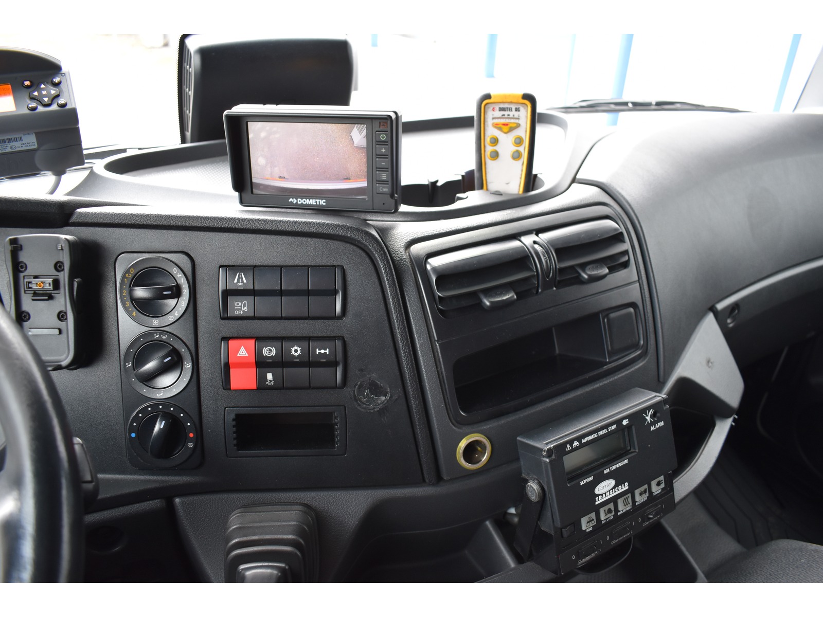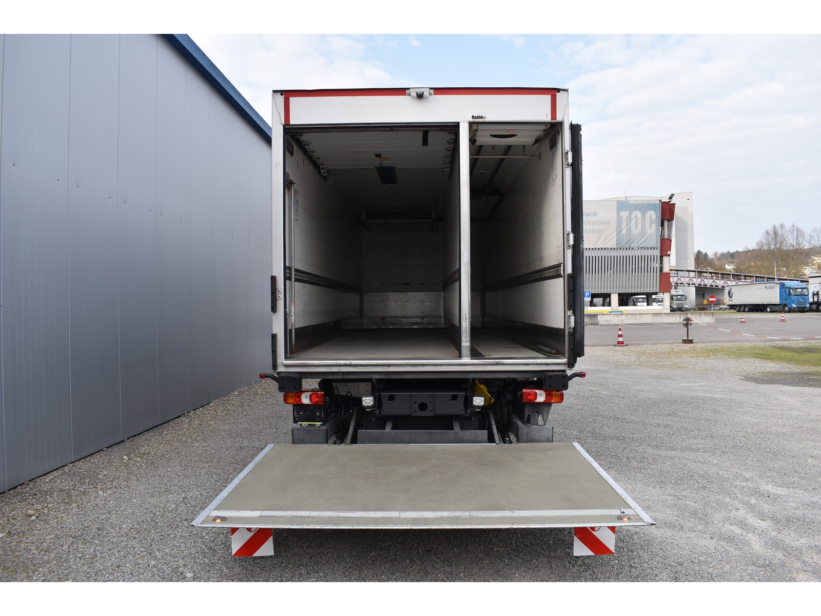 Tempomat, Klima, Differentialsperre, Hebebühne, Kühlgerät, 8-Gang Powershift Getriebe ClassicSpace-Kabine Radstand 5'360 mm längs verschiebbare Trennwand in der kleinen Zone 2-Zonen-Tiefkühlkasten mit 2 Verdampfern und verschiebbarer Trennwand Anfahrassistent Digital-Tacho je 1 Zurrschiene seitlich Klimaanlage Kühlaggregat Carrier Supra 1'250 MT mit Diesel- und/oder Netzbetrieb Kunststoffboden Ladebordwand Dautel mit 1'500 kg Tragkraft Ladebordwand-Blatt 1'800 mm mit Anti-Rutsch Belag und Funkfernbedienung Luftfederung Hinterachse Multifunktionslenkrad Rolltor links zusätzlich 1 Flügeltüre rechts Rückfahrkamera Sitzheizung