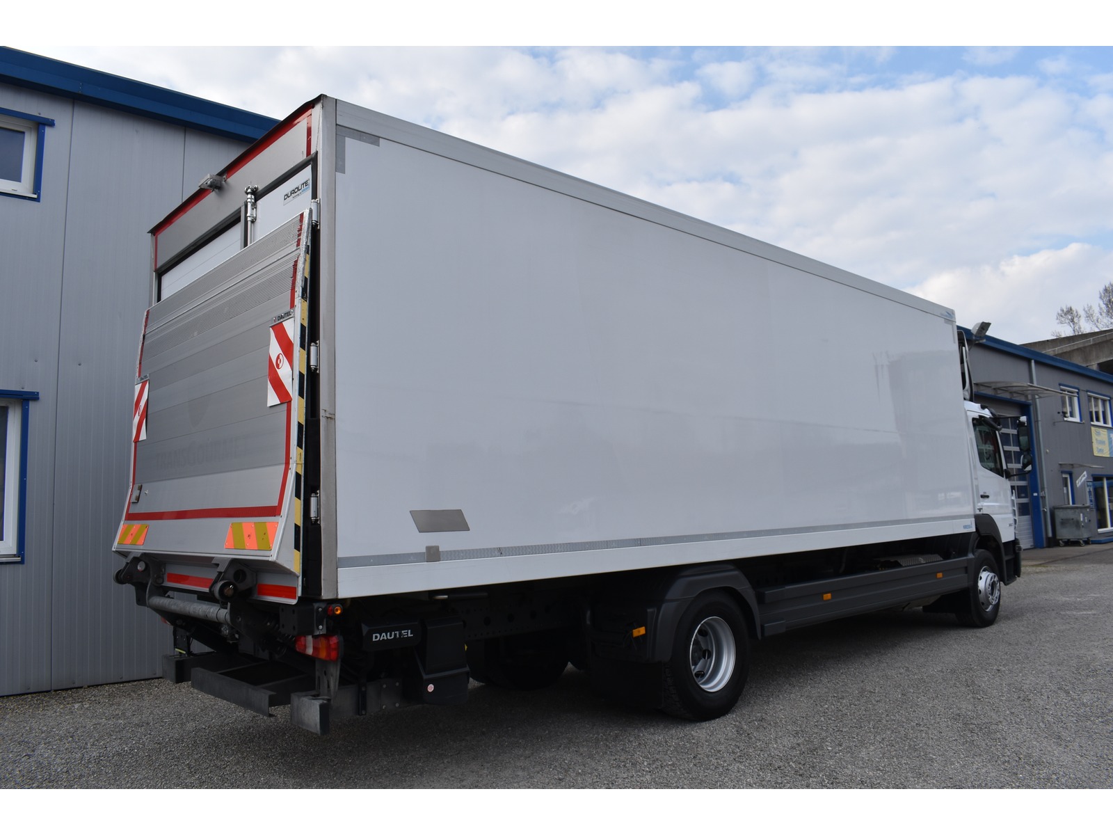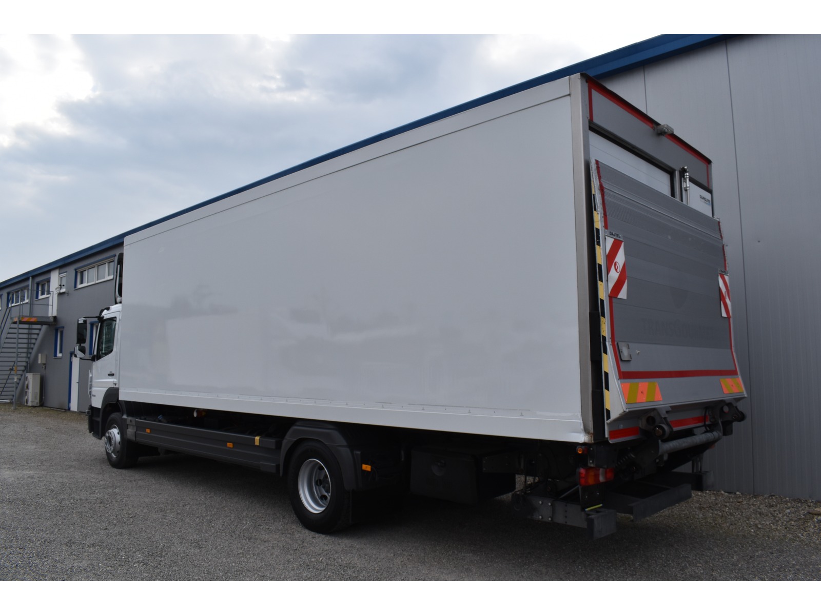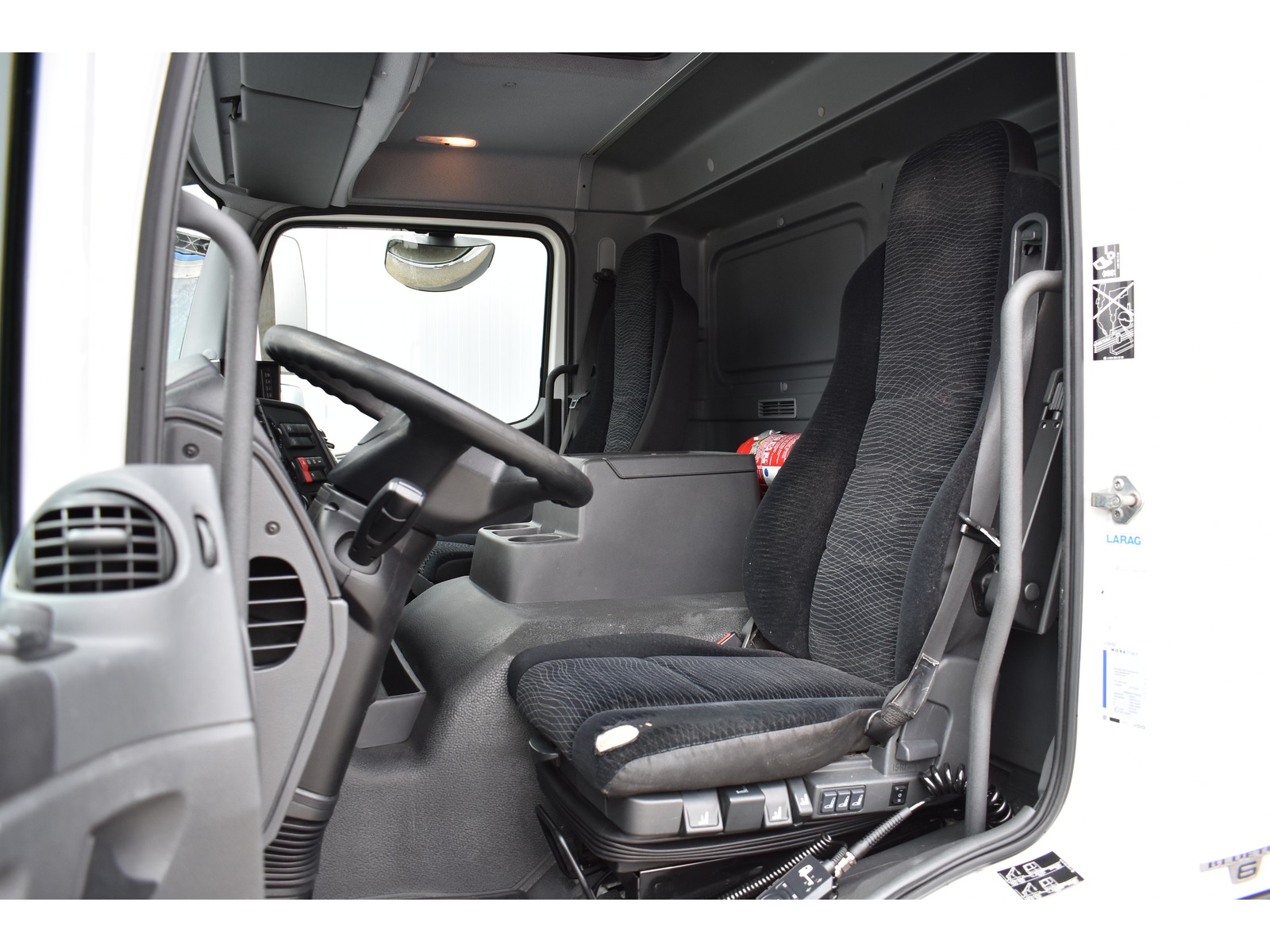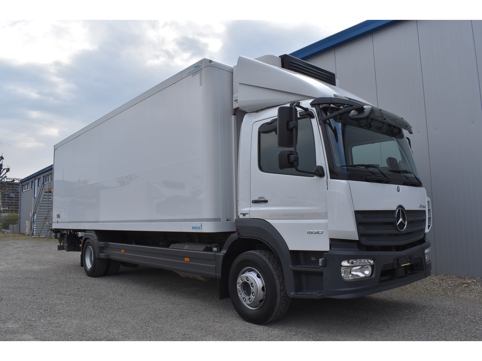 Tempomat, Klima, Differentialsperre, Hebebühne, Kühlgerät, 8-Gang Powershift Getriebe ClassicSpace-Kabine Radstand 5'360 mm längs verschiebbare Trennwand in der kleinen Zone 2-Zonen-Tiefkühlkasten mit 2 Verdampfern und verschiebbarer Trennwand Anfahrassistent Digital-Tacho je 1 Zurrschiene seitlich Klimaanlage Kühlaggregat Carrier Supra 1'250 MT mit Diesel- und/oder Netzbetrieb Kunststoffboden Ladebordwand Dautel mit 1'500 kg Tragkraft Ladebordwand-Blatt 1'800 mm mit Anti-Rutsch Belag und Funkfernbedienung Luftfederung Hinterachse Multifunktionslenkrad Rolltor links zusätzlich 1 Flügeltüre rechts Rückfahrkamera Sitzheizung