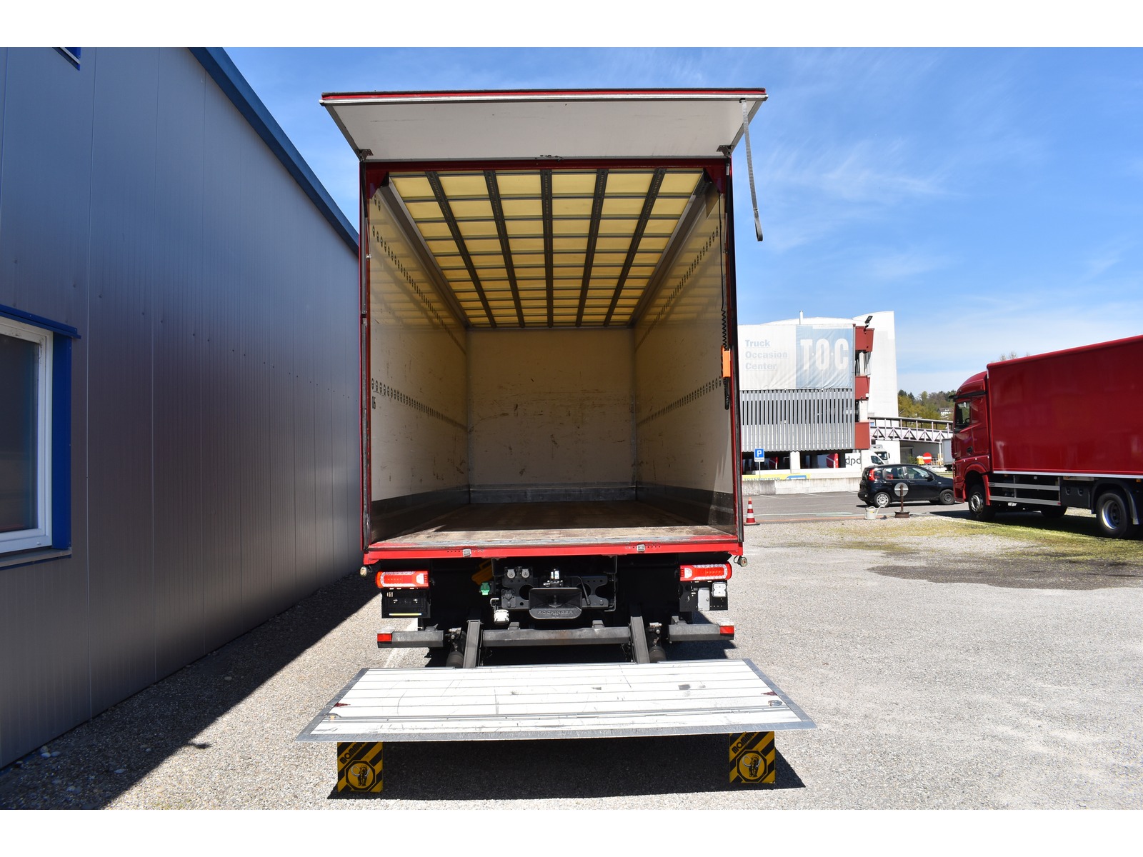 | Zubehör | Hebebühne, Anhängerkupplung, Traktionskontrolle, ABS, Navigationssystem, Standheizung, Klima, Multifunktionsanzeige, Tempomat, Zentralverriegelung, El. Fensterheber, 12-Gang Powershift Getriebe StreamSpace-Kabine Radstand 5'500 mm 1 Liege Abstandsregeltempomat Airbag Fahrer Anfahrassistent Anhängerkupplung Rockinger Duomatic-Anschluss Holzfussboden Klimaautomatik Ladebordwand Mammut mit 2'000 kg Tragkraft Ladebordwand-Blatt 1'600 mm mit Funkfernbedienung Lochschienen 5 Stück in Reihe längsgerichtet unter dem Dach Multifunktionslenkrad Navigationssystem Scheibenbremsen Sitzheizung Spurassistent Standheizung Vollluftfederung Werkzeugkiste Xenonscheinwerfer |