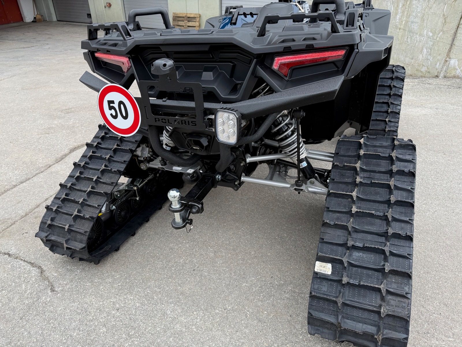 Fahrzeug ist geprüft als Kategorie Kleinmotorfahrzeug mit Rädern 90km/h und mit Raupen 50km/h.