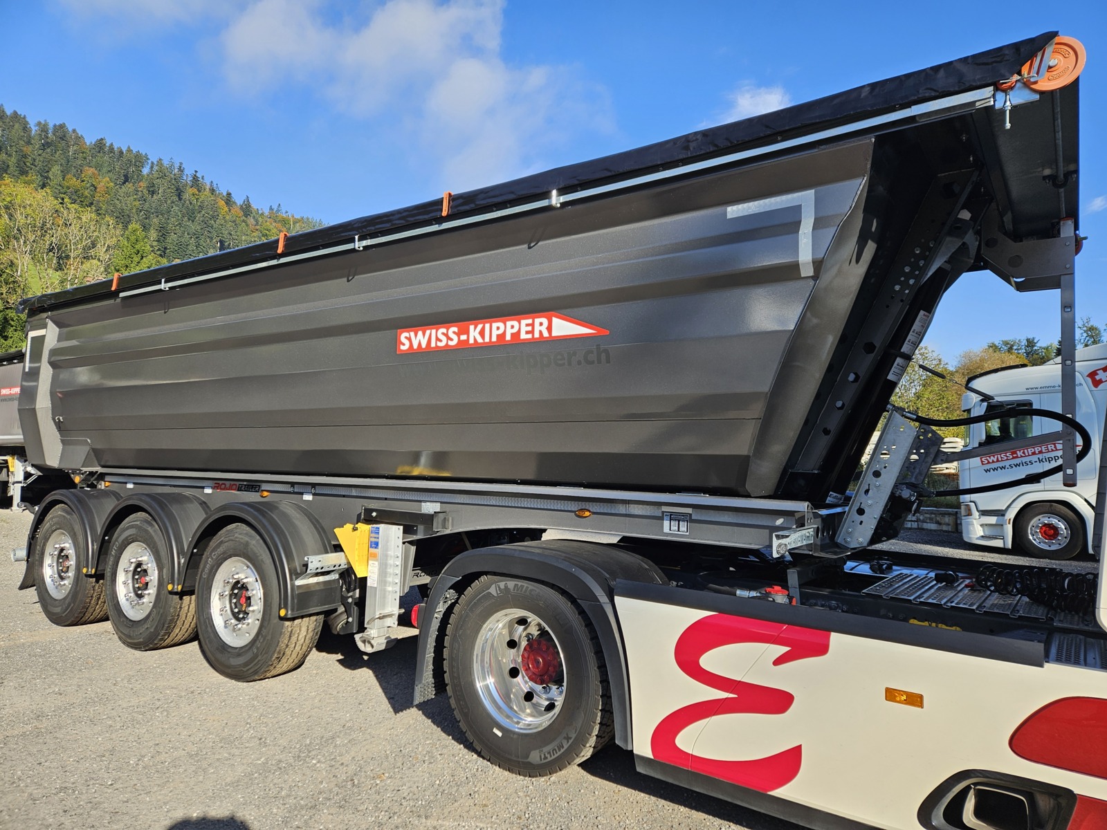 Bemerkung | Vollausstattung!! SAF Intradisc mit Scheibenbremsen 22,5", Alcoa Dura Bright, 1.+2. Achse liftbar, Spurbreite 2.140mm, Stahlmulde HARDOX 500 TUF, Bodenbreite 2.500mm in 4.5mm, Seitenwände in 3mm, Cramaro Schiebeverdeck elektrisch mit 400mm Bogenhöhe, pneumatischer Unterfahrschutz, Wabco Bedienbox für Luftfederung, Werkzeugkiste, Voll LED Beleuchtung, Chassis und Mulde RAL 9007 Graualuminium, 26m3, Leergewicht 5.300kg, Ab Lager lieferbar. |